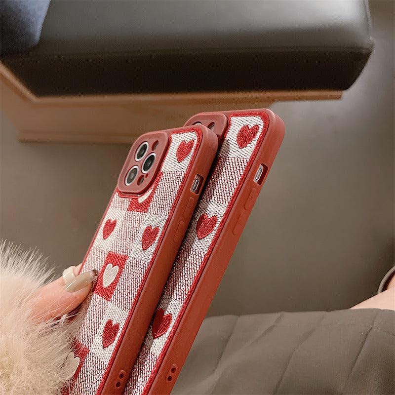 Checkerboard Heart Embroidered Phone Case Protector